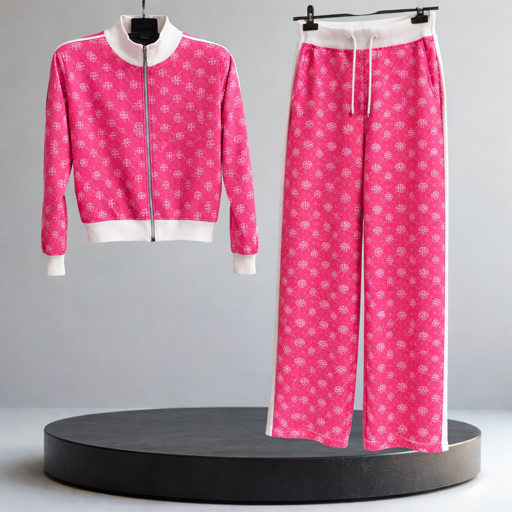 Compleul „Monogram Elegance Premium” redefinește stilul sport-couture printr-o îmbinare perfectă între confort, rafinament și atenție la detalii. Realizat dintr-un material de calitate superioară — un amestec fin de bumbac moale, elastan și fibră tehnică pentru rezistență și elasticitate — acest set oferă o purtare lejeră, dar impecabilă din punct de vedere estetic.