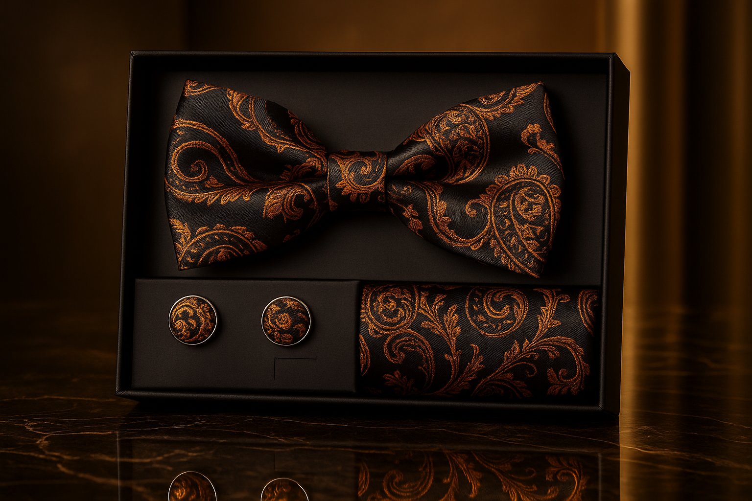 Setul este livrat într-o cutie luxury, ideală pentru cadou exclusivist, fără costuri suplimentare de ambalare. Potrivit pentru evenimente black-tie, gale, ceremonii, nunți sau apariții business high-class.