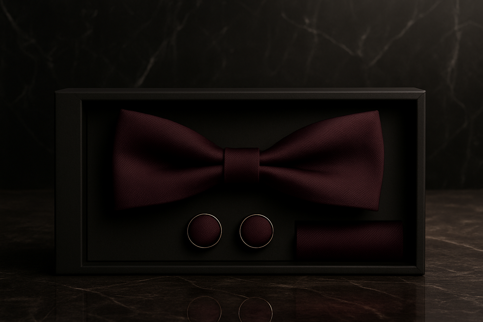 Set premium pentru bărbatul care își asumă eleganța clasică într-o nuanță profundă de burgundy – sofisticată, masculină și extrem de versatilă. Papionul este piesa centrală a ținutei, butonii adaugă un accent rafinat, iar batista creează echilibrul vizual perfect.