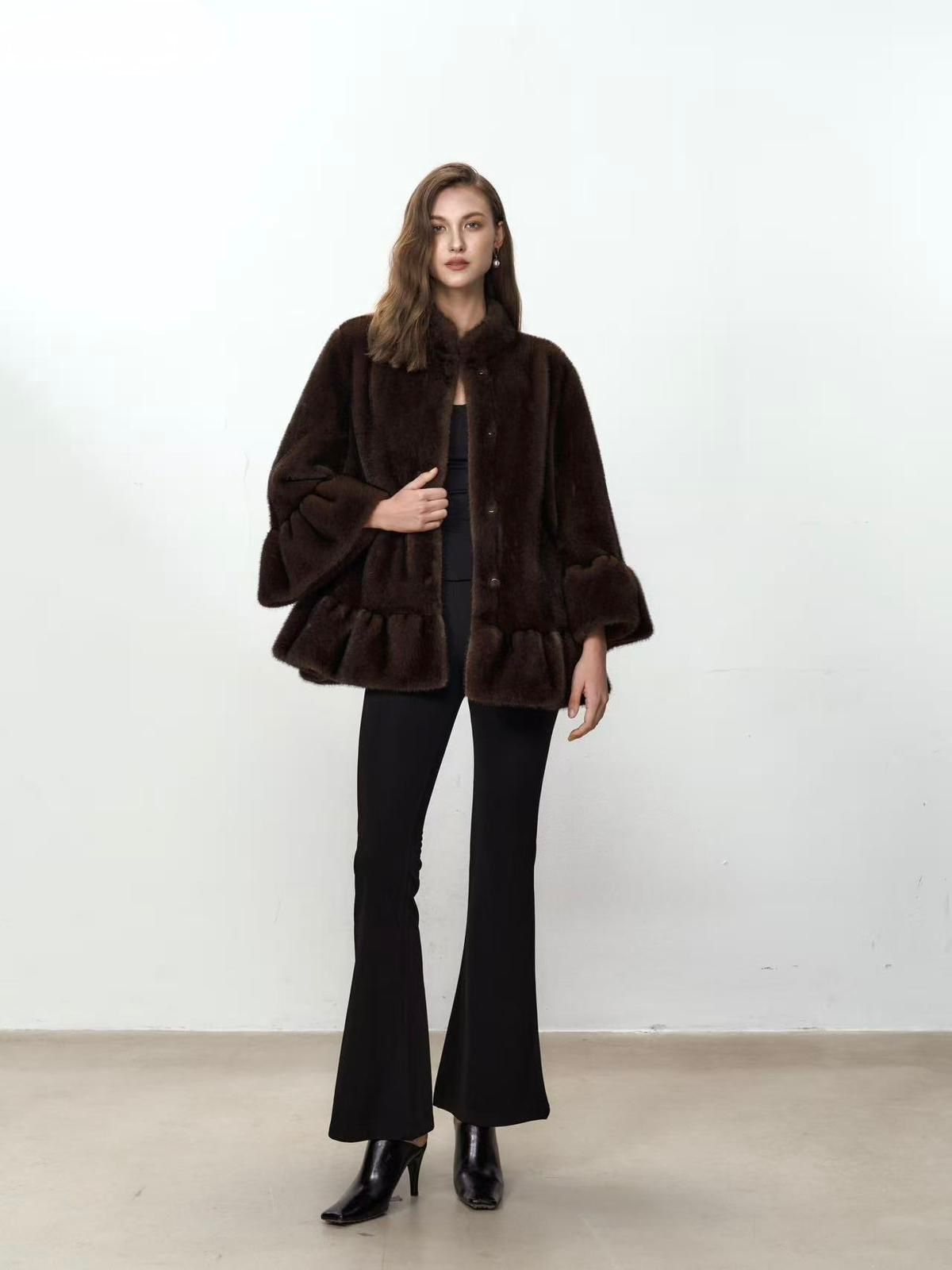 Elenya este expresia pură a feminității rafinate. Cu o linie elegantă și un volum controlat, această jachetă din blană ecologică reușește să combine căldura, delicatețea și stilul sofisticat într-o singură piesă. Textura moale, cu fir scurt și catifelat, oferă o senzație luxoasă la atingere, în timp ce croiala amplă, cu volane fine în partea inferioară și la mâneci, adaugă o notă romantică și distinsă.