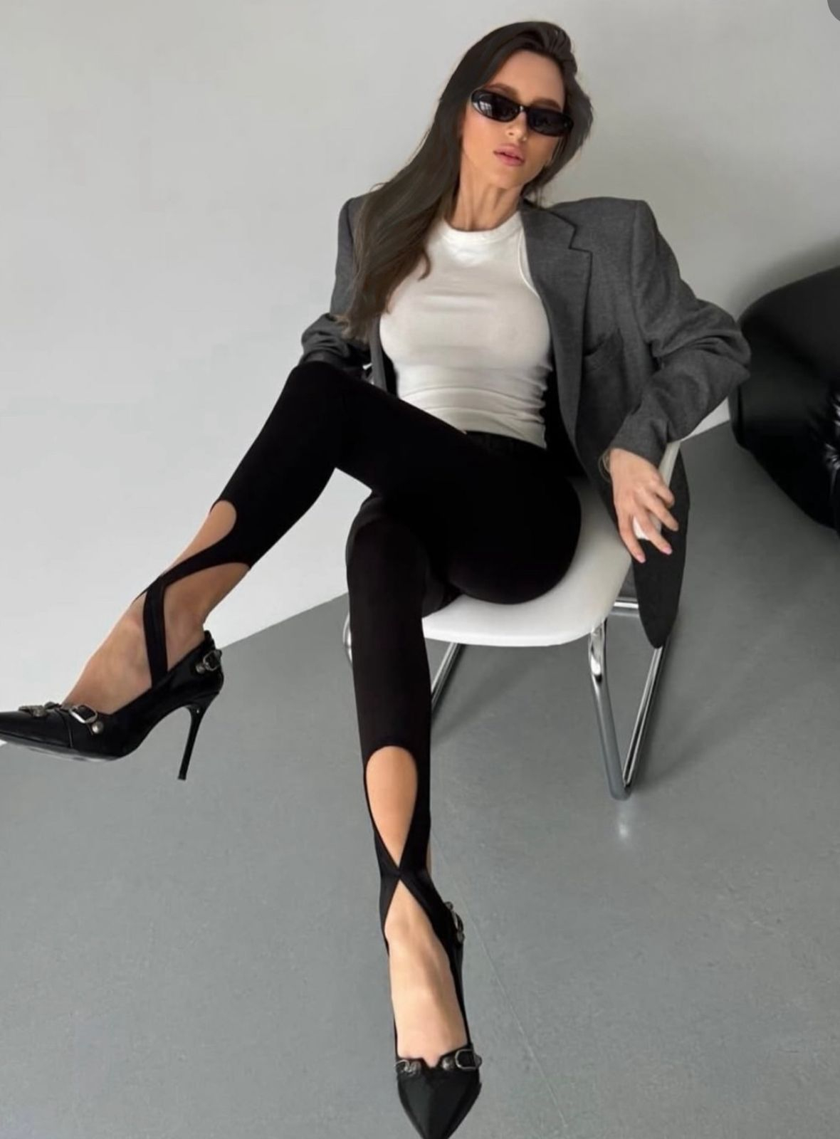 Infinity Cut redefinește stilul urban elegant, aducând în prim-plan o piesă care combină perfect confortul cu rafinamentul contemporan. Realizați dintr-un material elastic, cu talie înaltă și un croi sculptural, acești colanți au un design cu decupaj în zona gleznei și prindere tip bandă, creând un efect vizual unic și sofisticat.