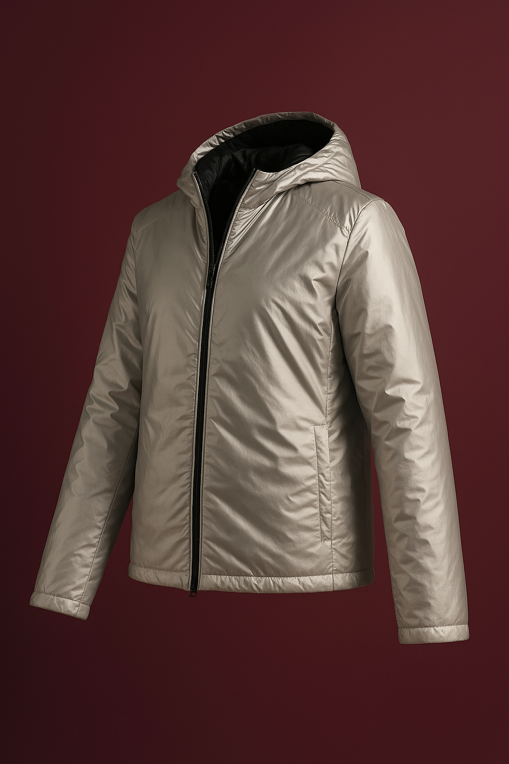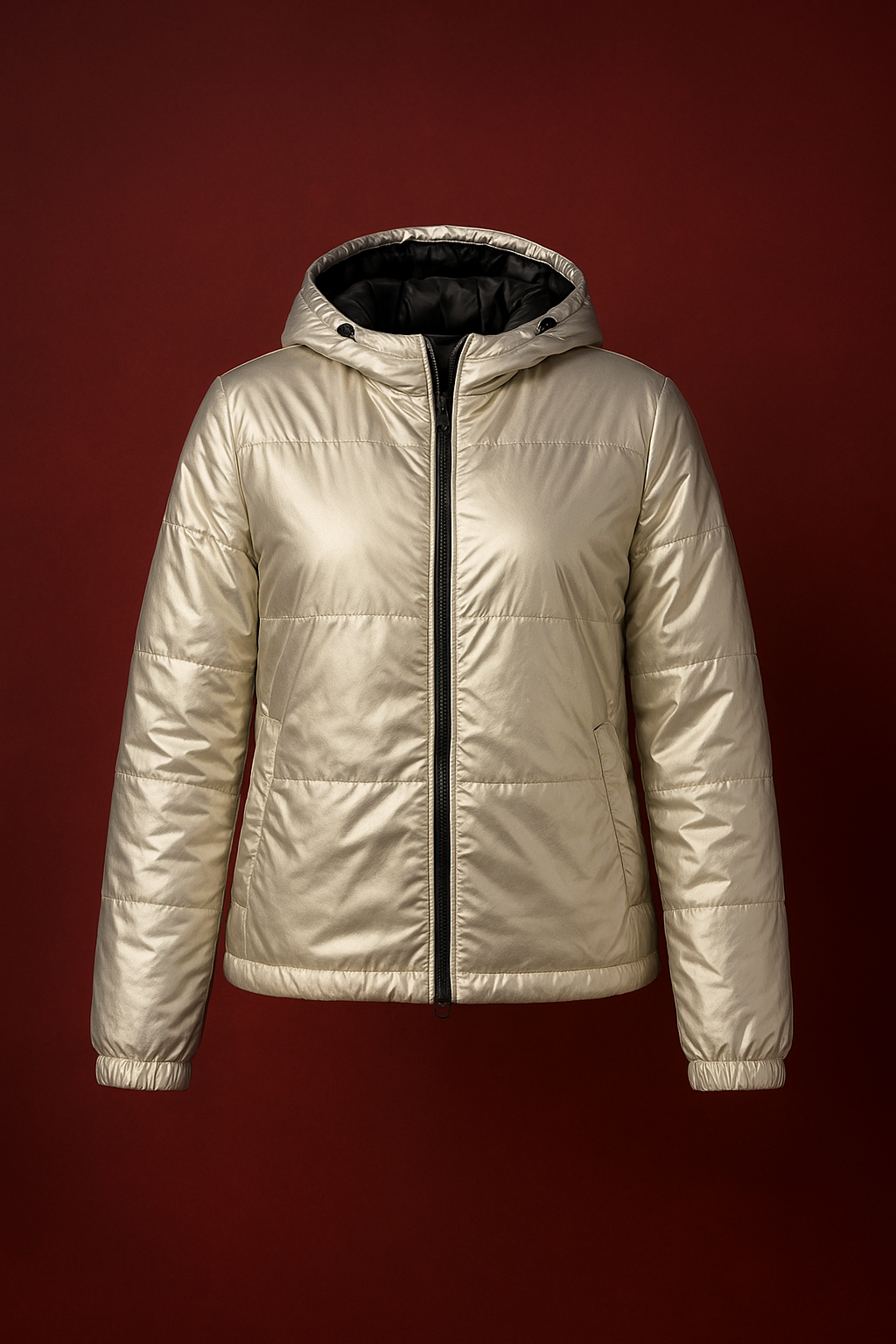 Geaca „Silver Mirage” redefinește stilul urban contemporan printr-un design minimalist cu accente futuriste. Croiala sa dreaptă și finisajul metalizat o transformă într-o piesă statement, perfectă pentru ținutele de zi sau serile reci de toamnă și iarnă. Gluga ajustabilă și fermoarul frontal contrastant adaugă un plus de funcționalitate și dinamism. Interiorul matlasat oferă confort termic optim, iar textura lucioasă evidențiază un look sofisticat, ușor de integrat în outfituri moderne.