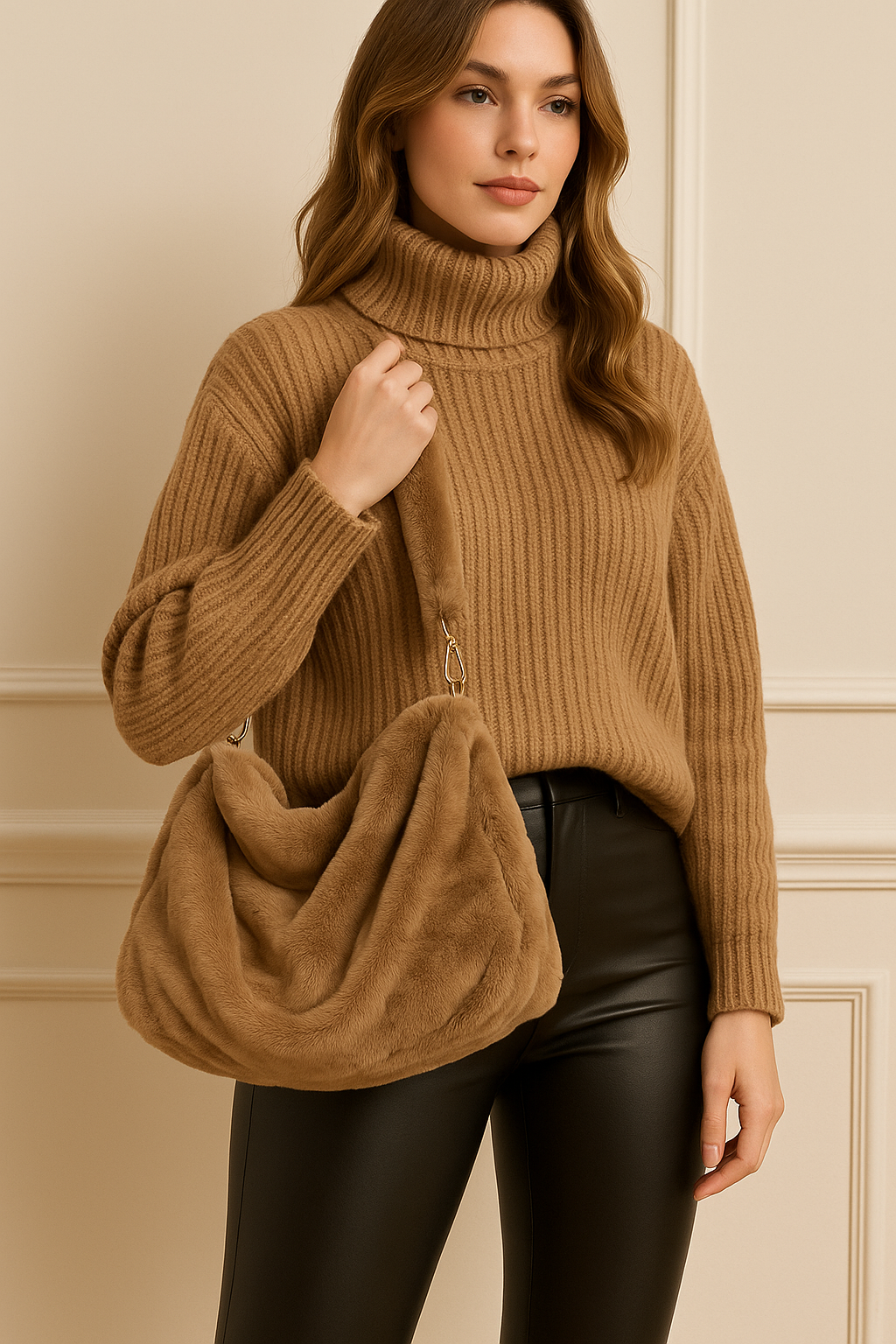 Geanta LUNA redefinește eleganța minimalistă. Confecționată din blană artificială moale de înaltă calitate, în nuanțe calde de maro mocha, această piesă oferă un echilibru perfect între confort, stil și rafinament.