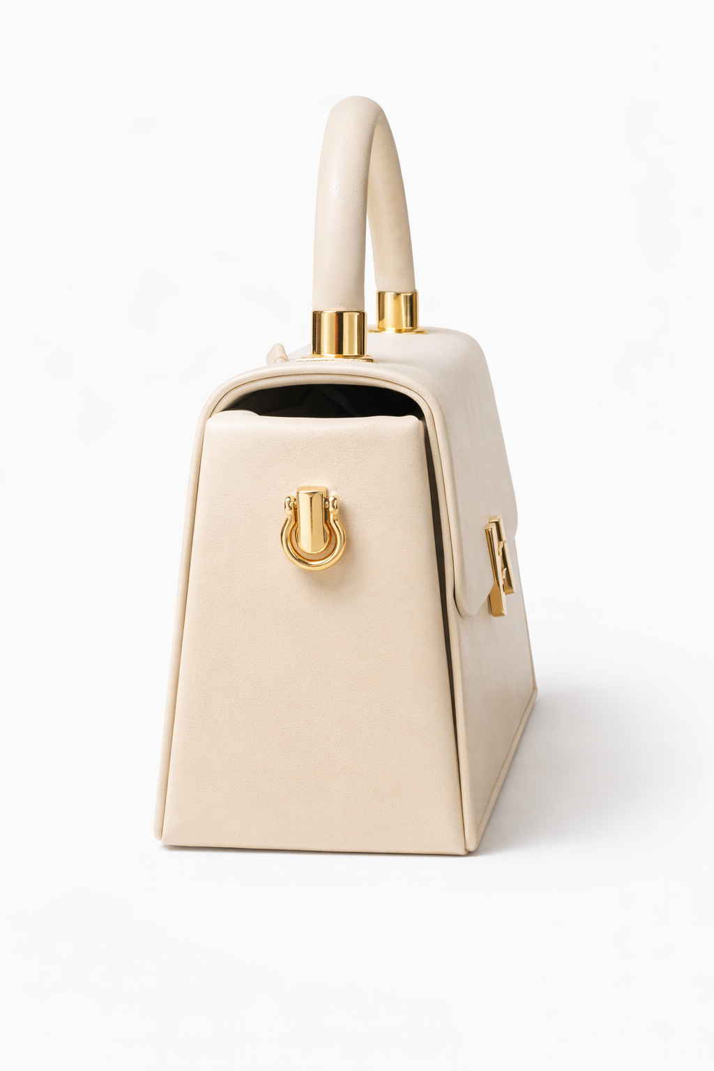 Forma trapezoidală oferă stabilitate și o prezență premium, iar mânerul rigid tip top handle o transformă într-o piesă ideală pentru ținute classy, office sau evenimente. Este genul de accesoriu care ridică instant orice outfit minimalist.