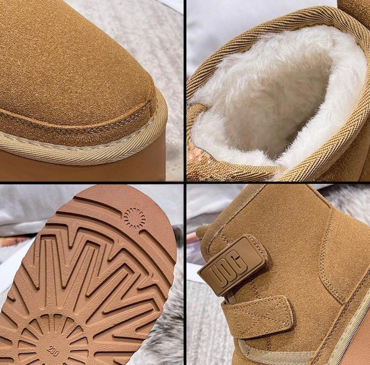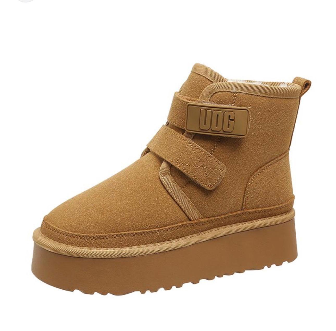 Ghete casual cu design modern, concepute pentru confort termic și stabilitate în sezonul rece. Modelul este realizat cu talpă groasă tip platformă, care oferă susținere, izolare față de sol și un plus de atitudine urbană. Sistemul de închidere cu bandă velcro asigură o fixare rapidă și sigură, precum și un aspect contemporan.