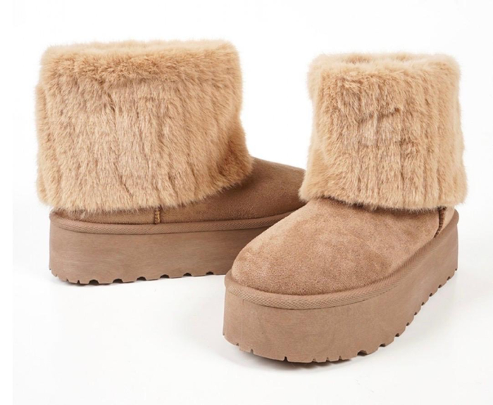 Ghete călduroase, concepute pentru confort maxim și protecție termică în sezonul rece. Modelul este prevăzut cu manșetă generoasă din blană ecologică moale, care oferă un aspect cozy și un plus de căldură. Talpa groasă, ușor ridicată, asigură stabilitate, amortizare și izolare față de sol, fiind ideală pentru purtare zilnică.
