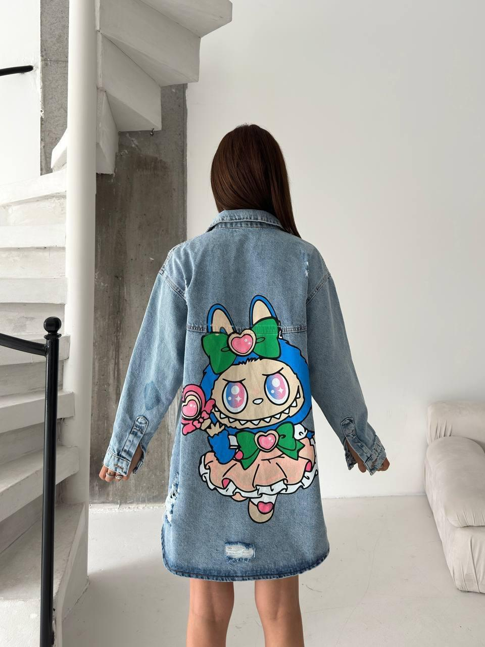 Dacă iubești culorile și ținutele cu personalitate, „Candy Bunny Vibes” este exact ce cauți. Croiala oversize oferă libertate de mișcare și confort, în timp ce imprimeul vesel și plin de detalii colorate transformă această jachetă într-un statement piece. Denim-ul are un aspect ușor prespălat, completat de rupturi subtile pentru un look urban autentic. Perfectă pentru a fi purtată cu jeanși skinny, colanți sau chiar peste o rochie simplă, această jachetă promite să-ți scoată outfitul din anonimat.