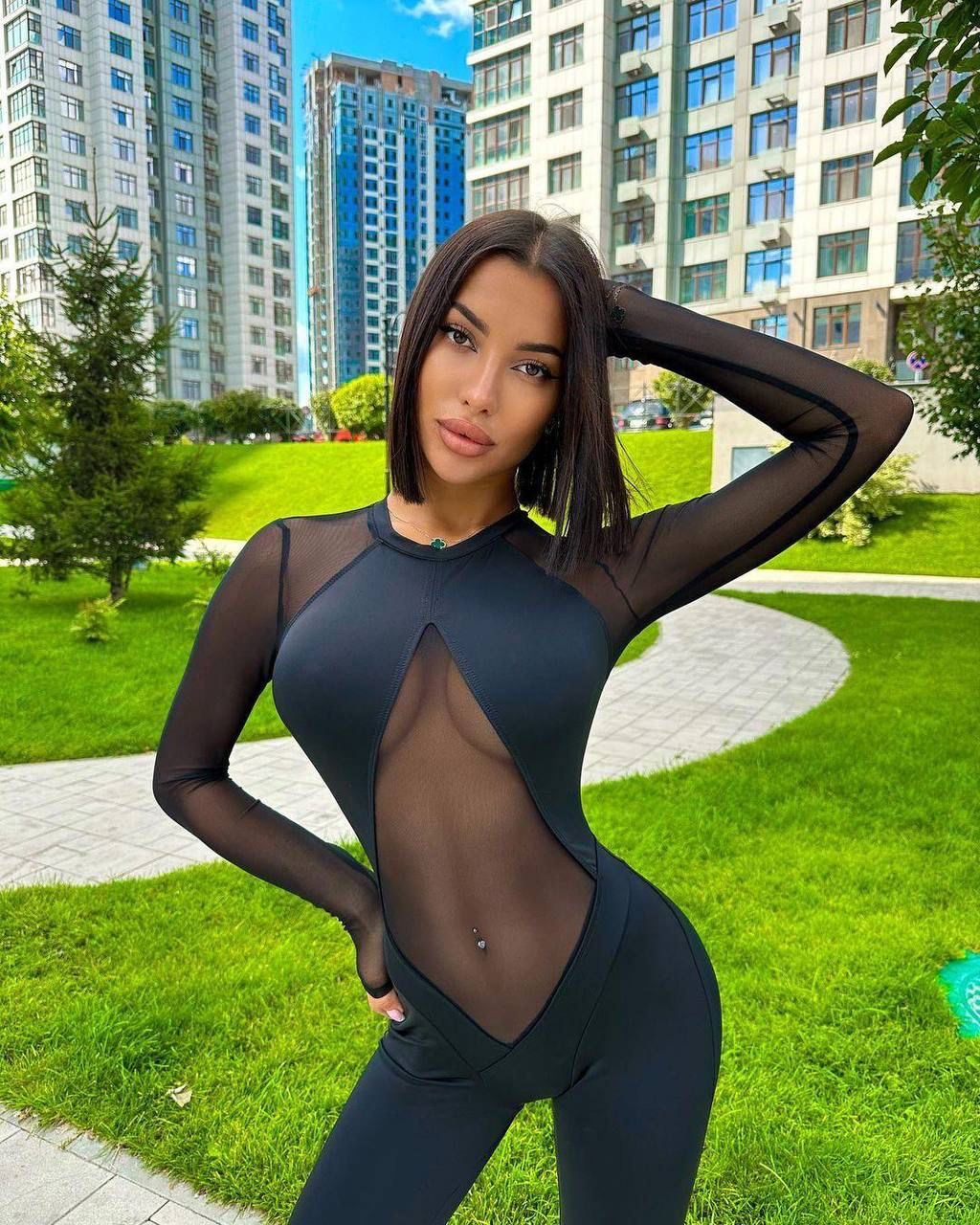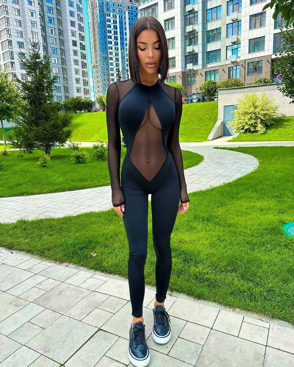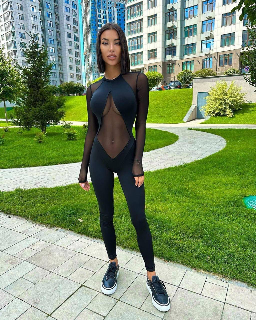 Inserțiile transparente sunt plasate inteligent pentru a crea un efect de „eclipse contour”: bust definit, talie accentuată, siluetă alungită. Materialul mulat lucrează eficient pe corp, menținând o linie impecabilă, în timp ce mesh-ul aduce respirabilitate și un look avant-garde.