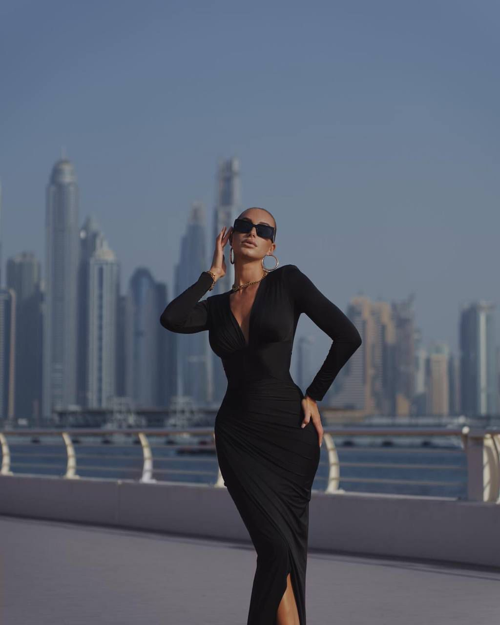 Decolteul în V este calibrat smart pentru un look sofisticat, iar zona taliei este drapată strategic pentru a modela forma corpului fără efort. Mânecile lungi mențin tot ansamblul într-o zonă classy, modernă, potrivită pentru evenimente unde vrei să transmiți prezență și control.