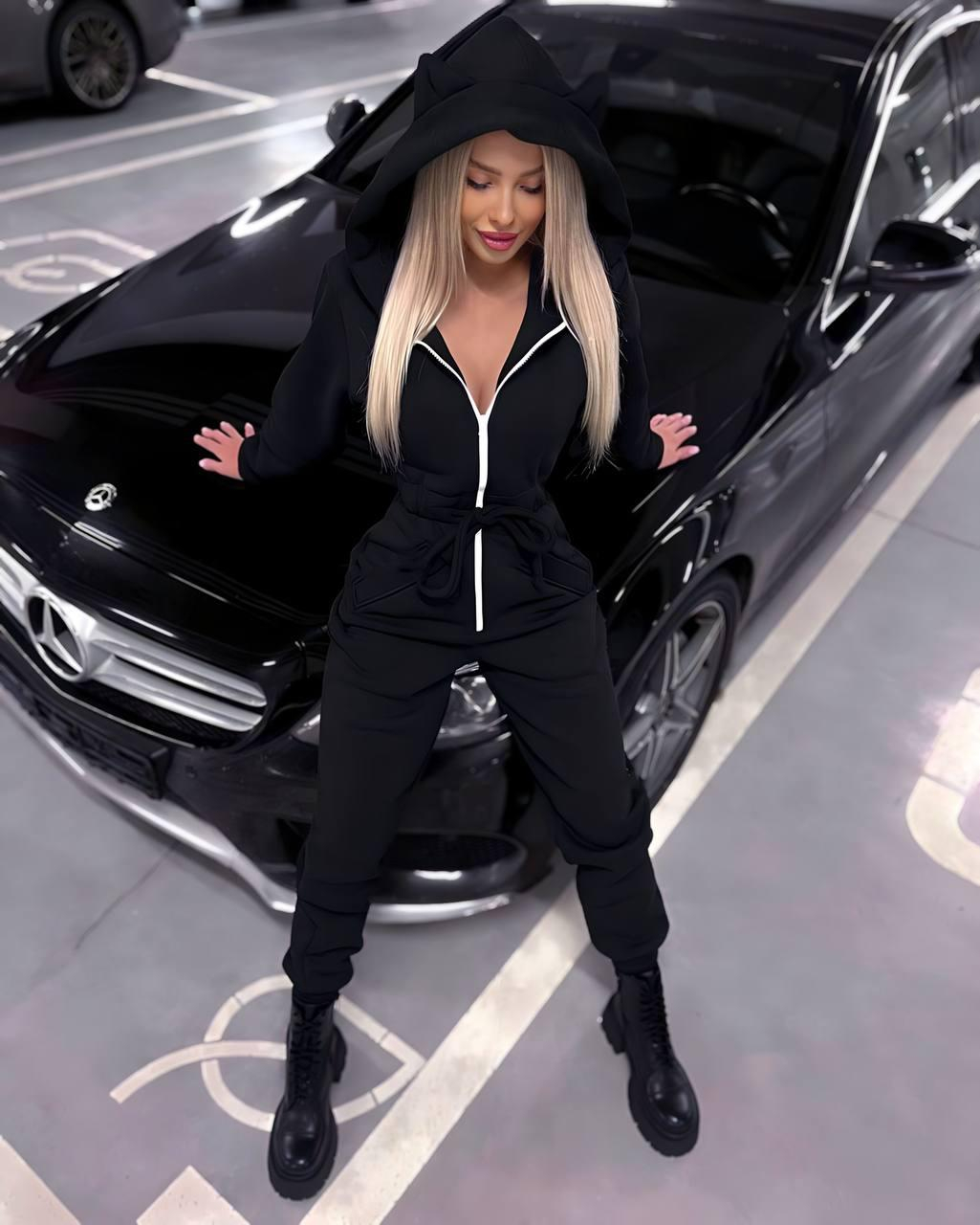 Salopeta “Cat Ears” combină confortul absolut cu o atitudine jucăușă și urbană. Croiala lejeră, talia accentuată și gluga cu urechiușe aplicate o transformă într-o piesă statement pentru zilele reci în care stilul rămâne prioritate.