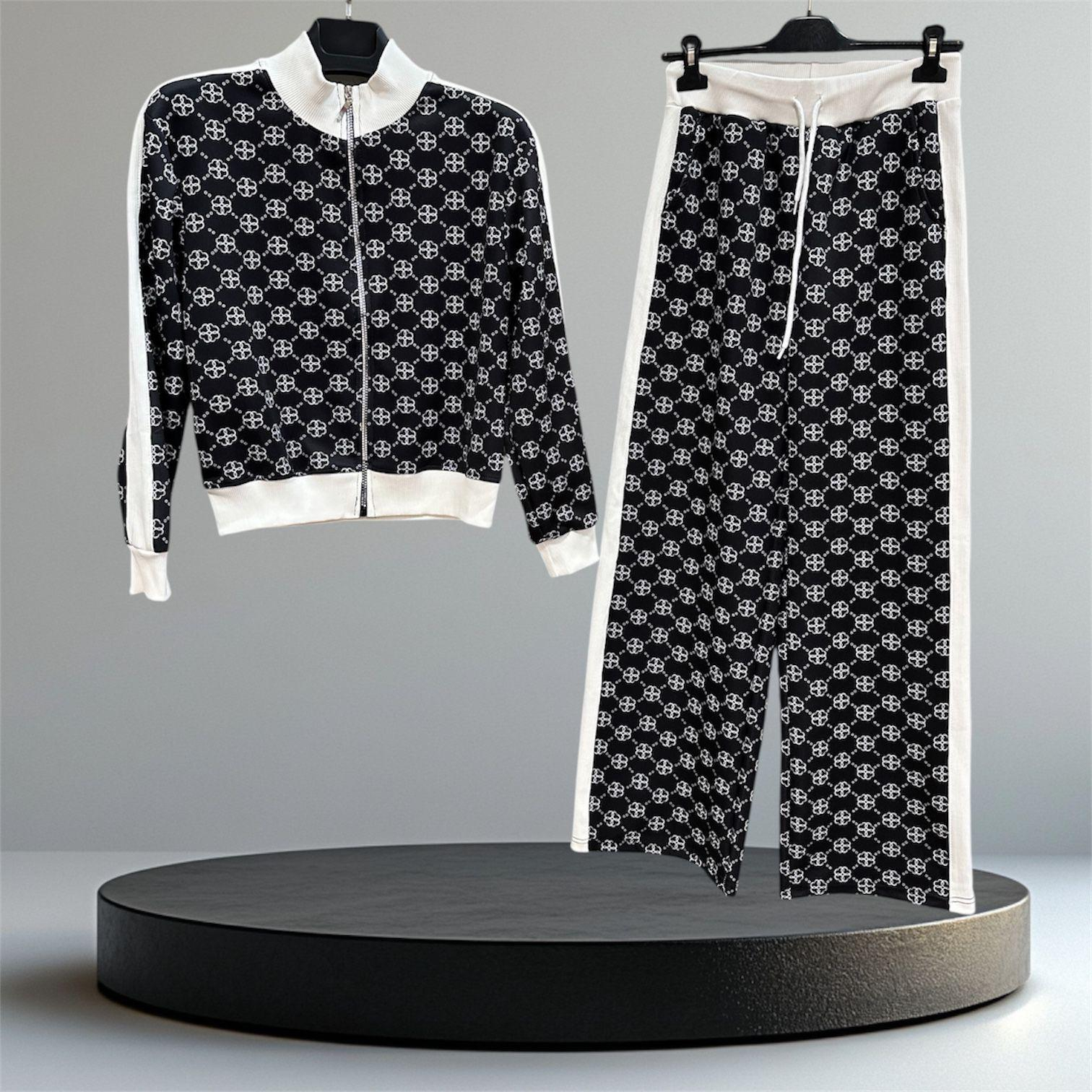 Compleul „Monogram Elegance Premium” redefinește stilul sport-couture printr-o îmbinare perfectă între confort, rafinament și atenție la detalii. Realizat dintr-un material de calitate superioară — un amestec fin de bumbac moale, elastan și fibră tehnică pentru rezistență și elasticitate — acest set oferă o purtare lejeră, dar impecabilă din punct de vedere estetic.