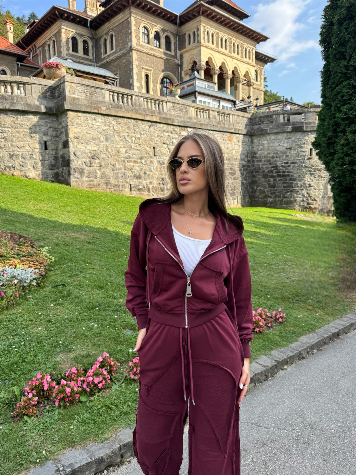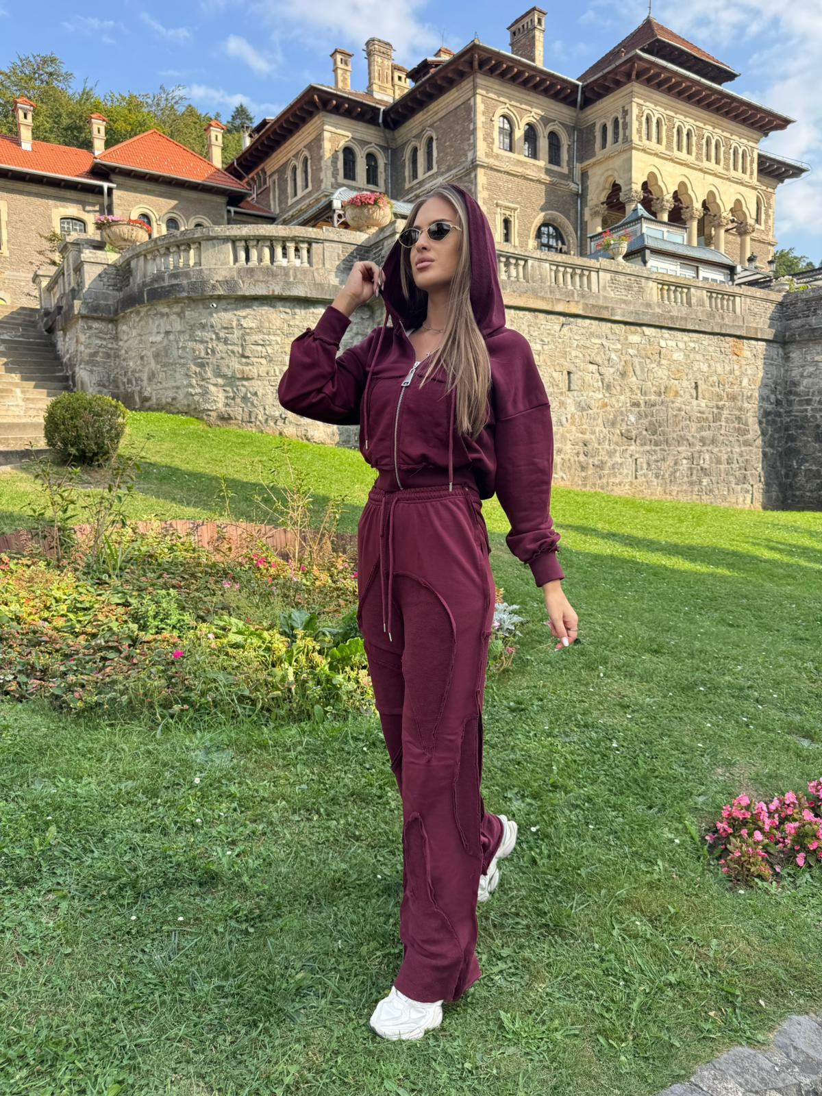 Designul său unic, cu cusături decorative tip „puzzle”, adaugă o notă modernă și nonconformistă 😎, transformând un simplu trening într-un outfit statement. Versatilitatea este un alt atu: poți purta bluza și pantalonii împreună pentru un look complet 🔝 sau separat, combinându-i cu alte piese din garderoba ta 👌.